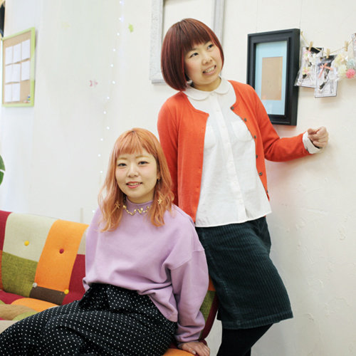 なんやかんやで撮影をして、ちょっとジェムのスタイリストイメージ写真も撮ってみたかったのでジェムの可愛いソファーにスタイリスト2人座らせてみました。