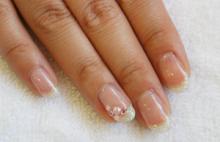 クリアジェルをベースに薬指のストーンがポイントになっていて上品でキレイなネイルに仕上がっております。